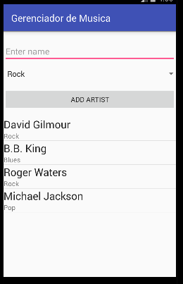 Ao rodar a aplicação, ela apresenta os artistas cadastrados: