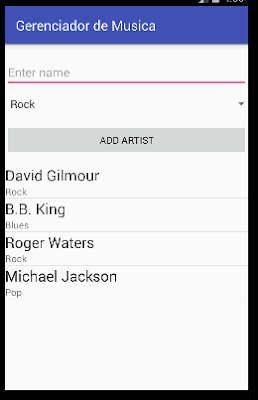 Na verdade, não há nada de muito novo nesta etapa. O código é, mutatis mutandis, o mesmo que já mostramos em um post anterior, quando apresentamos todos os artistas cadastrados no banco de dados em uma lista (activity principal).