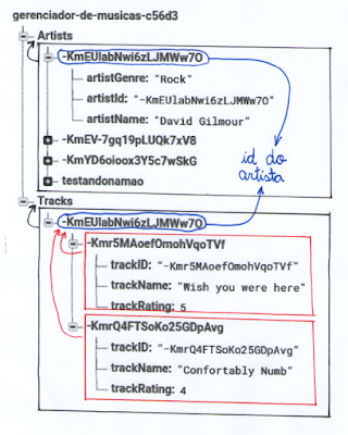 Já na activity que trabalha com as músicas (tracks), nossa referência ao banco de dados aponta para O FILHO da chave Tracks que representa o "id" do artista, já que as músicas são acessadas a partir de um artista específico: