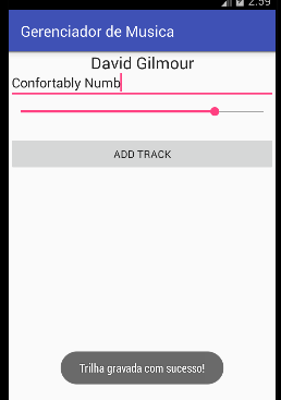 Clicando em "David Gilmour", apontaremos para o id deste artista, debaixo da chave tracks, e então serão recuperadas todas as músicas deste artista, que serão exibidas na listView correspondente: